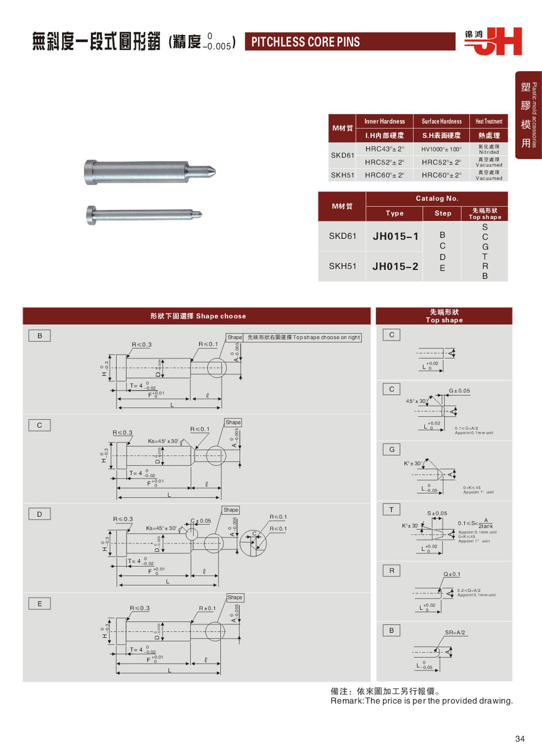 訂購:34-無斜度一段式圓形銷 JH015