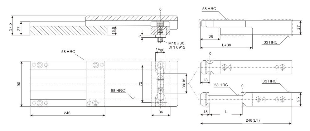 ※ Precautions: lt is required to calculate the same stroke for symmetrical installation during die processing. Otherwise, it will cause unbalance force of single set of modelocking buckle and breakage of component.
