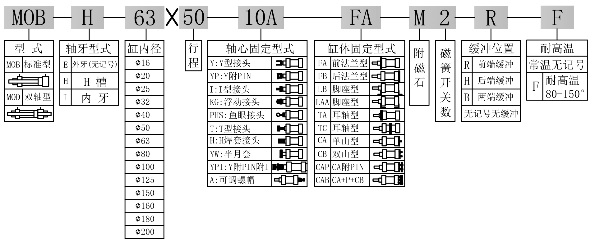 | 油壓缸內(nèi)徑 Bore sizes of cy linder(mm) | Φ16、Φ20、Φ25、Φ32、Φ40、Φ50、Φ63、Φ80、Φ100、Φ125、Φ150、Φ160、Φ180、Φ200 |