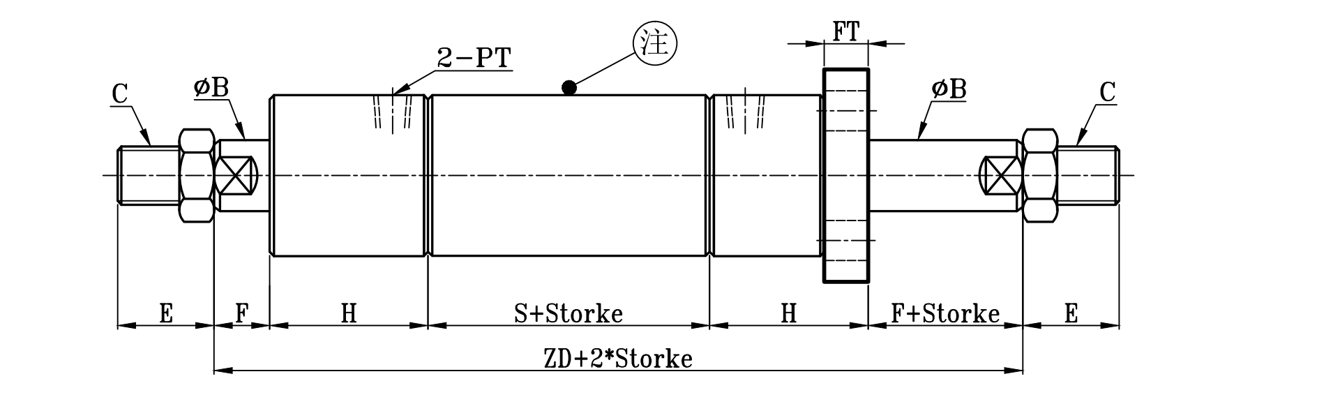 | 缸徑 BORE | ΦB | C | E | F | HI | H | ΦI | P | P1 | PT | S1 | S | ZB | ZD | FT | ΦFD | FR | FX | FY | FZ | Q | ΦR | Φ0 | ΦP |