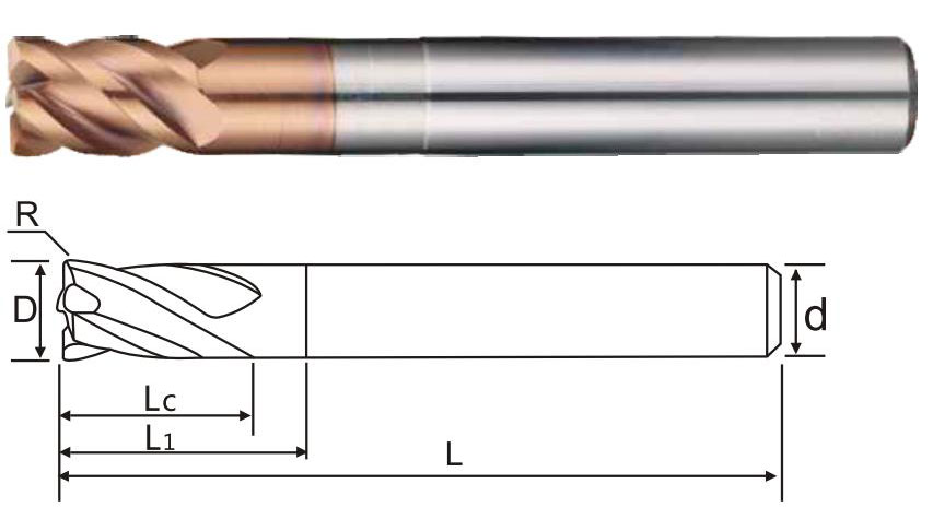 | 商品編號(hào) Product number | 刃徑(D) Blade diameter | R角 R angle | 刃長(Lc) Blade length | 有效長(L1) Effective long | 柄徑(d) Shank diameter | 全長(L) Overall length | 刃數(shù) Flute |