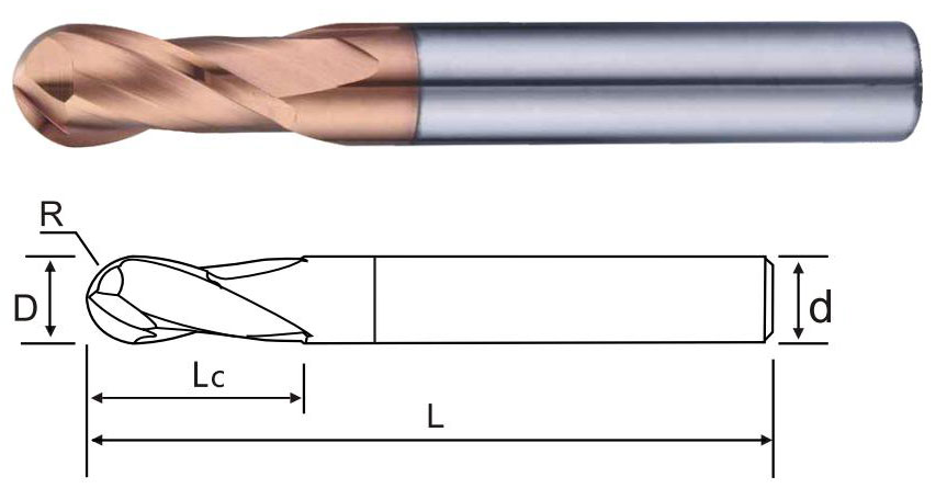 | 商品編號 Product number | 半徑(R) Radius of R | 刃徑(D) Blade diameter | 刃長(Lc) Blade length | 柄徑(d) Shank diameter | 全長(L) Overall length | 刃數(shù) Flute |